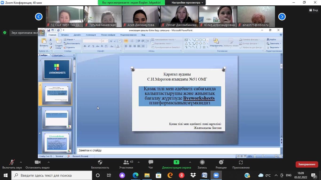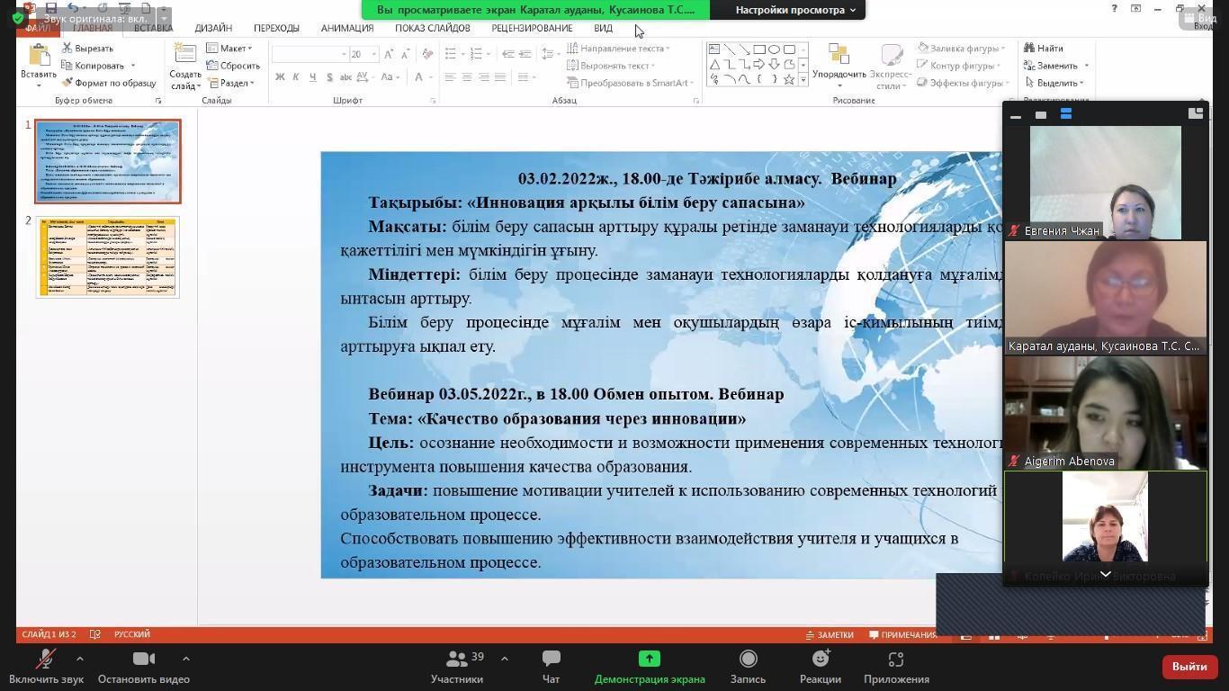 3.02.2022ж. С.И.Морозов атындағы №51 ОМГ-да «Инновация арқылы білім беру сапасы» тақырыбында тәжірибе алмасу вебинары өтті.