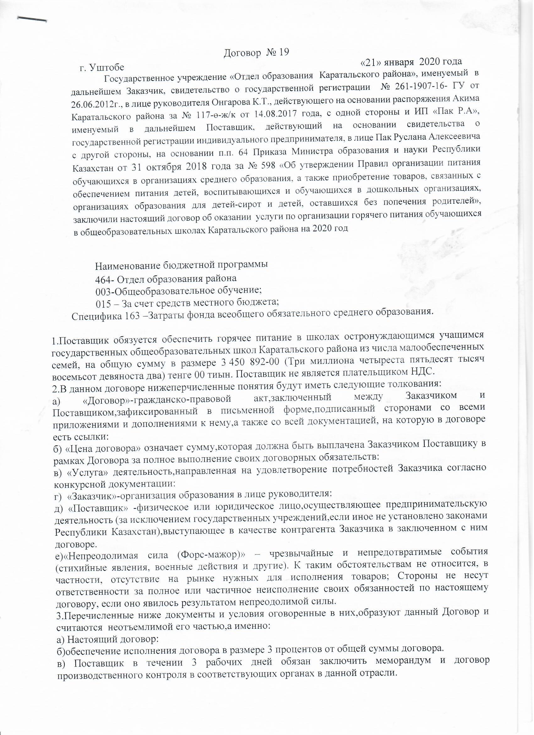 Тамақтандыру келісім шарты » С.И.Морозов атындағы №51 орта мектеп-гимназиясы
